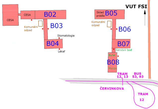 | Plánky areálů